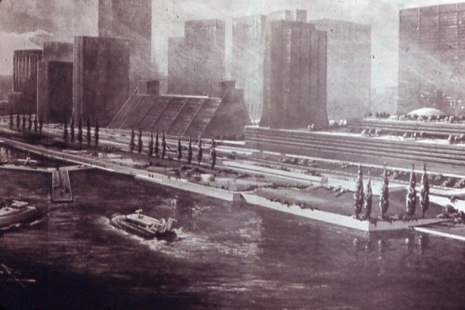 Digging through the files I found this image of the proposed Project 200 for the waterfront of Vancouver looking east from Stanley Park.