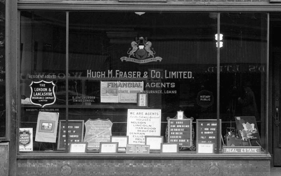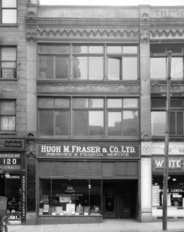 The Vancouver Archives full resolution images are great. It makes for all sorts of discoveries. Here’s 132 W. Hastings and the detail. The photographer and his camera set on a tripod are visible in the reflection.