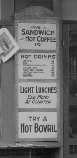 In 1921 at the Tram News Stand you could get a light luncheon or hot drinks while waiting for the train at “Marpole’s popular lunch counter”. Drinks range from Hot Bovril, Ginger Wine to Oyster Cocktails all for 10 cents. Spend big and get their hot coffee and sandwich deal for 15 cents.