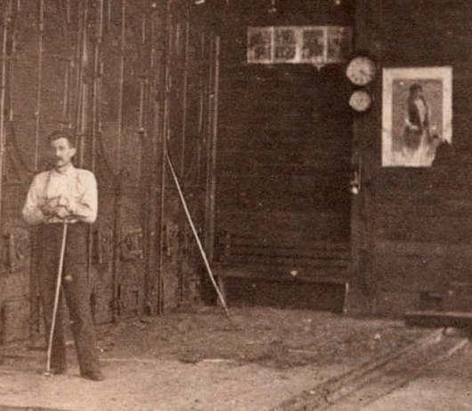 In 1893 the employees of the Electric Railway’s powerhouse at the foot of Barnard (Union) Street brightened up the boiler room with the charms of their pin up girl.