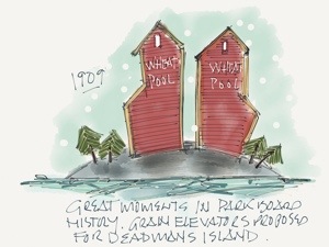 In 1909, someone thought it might be a good idea to build grain elevators on Deadmans Island. Park Board turned the idea down.