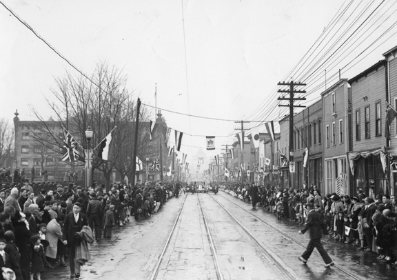 The photo shows the Ming Sun building (centre right at the power pole) in 1939 when it was still owned by the Uchida family. The crowds are waiting for the King and Queen to pass by. Photo courtesy of the Nikkei National Museum & Cultural Centre; Nishihata Family collection,
