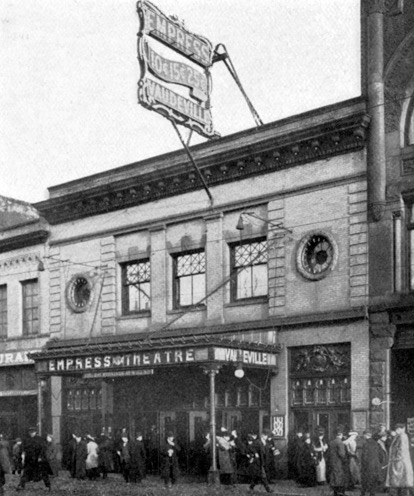 The photograph on the site from the Duluth Public Library confirms that the Bijou shown in the Archives image above is indeed located in Duluth. Except for the canopy with the Empress name the rest of the details are identical to the Archives image. The Duluth Bijou was designed by the architect William Allen Hunt.