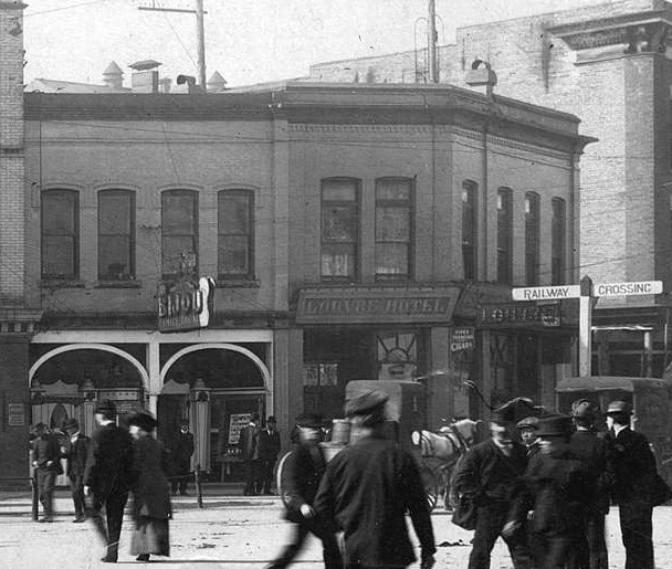 Looking at the image, which shows the aftermath of a flood, you can see a sign for the Pabst Hotel in the Brown Brother’s Building and the furniture store next door. None of these details match the building in Vancouver.
