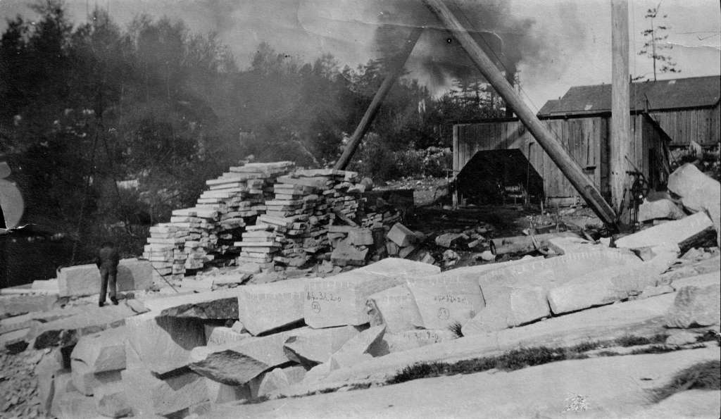 Located in Jervis Inlet near Nelson Island, Granite Island’s quarries provided building stone for a number of prominent buildings in the city including the former Post Office and Winch building that make up a portion of the Sinclair Centre, and the former Bank of Commerce at Granville and Hastings. The stone was exported to Australia and other places including Seattle where it was used for the Federal Courthouse.