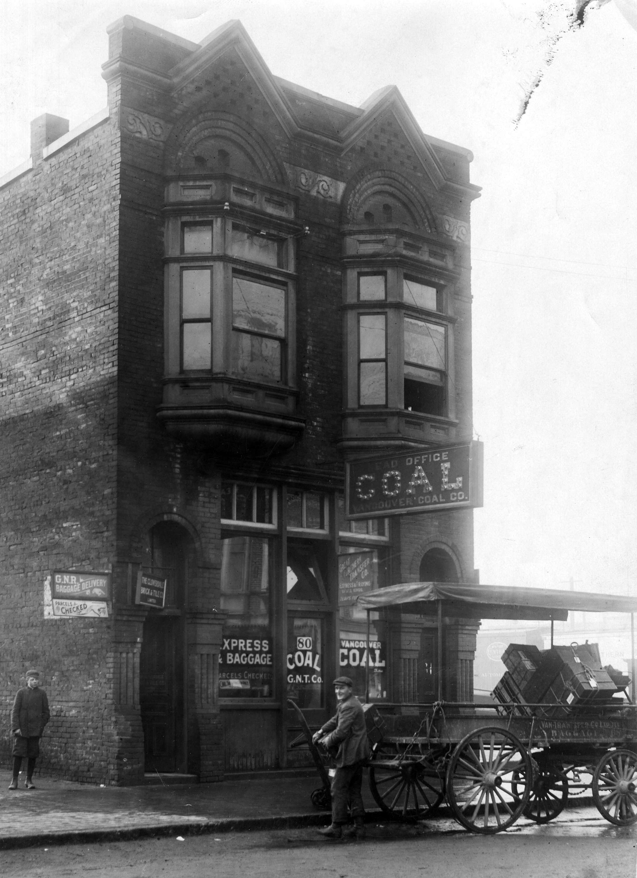 The building was used by the railroad briefly a baggage store but space was later leased to the Great Northern Transfer, the Great Northern Express, Cloverdale Brick and Tile and Vancouver Coal Companies. W. H. Chow the noted Chinese Canadian architect and contractor had his offices here in the early 1900s before selling that firm to his business partner.