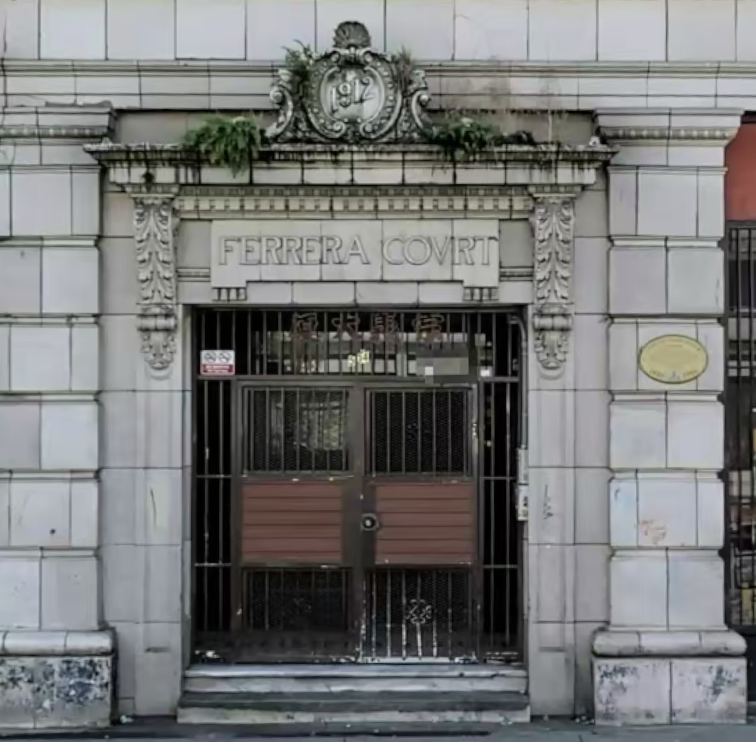 At the south east corner of Jackson Avenue and Hastings Street Ferrera Court is an imposing presence with its tan brick and striking terra cotta ornament. On Hastings Street to the right of the entrance is a yellow oval plaque put up in 1986 as part of Vancouver’s Centennial celebrations. These plaques detailed interesting events and snippets of city history.